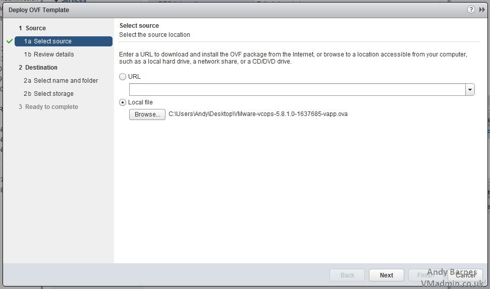 5. Browse to the local VCOPS-xxxxxxxxxx.ova file you downloaded from VMware and Click Next.